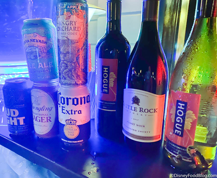 Beer selections included cans of Bud Light, Yuengling, Corona, Sierra Nevada, and Angry Orchard Hard Cider, and there were also both white and red varieties of wine by the glass to choose from.