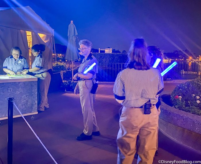 At World Showcase Plaza (next to Disney Traders and adjacent to the Mexico Pavilion), you’ll be greeted by a Cast Member who will get you all checked in.