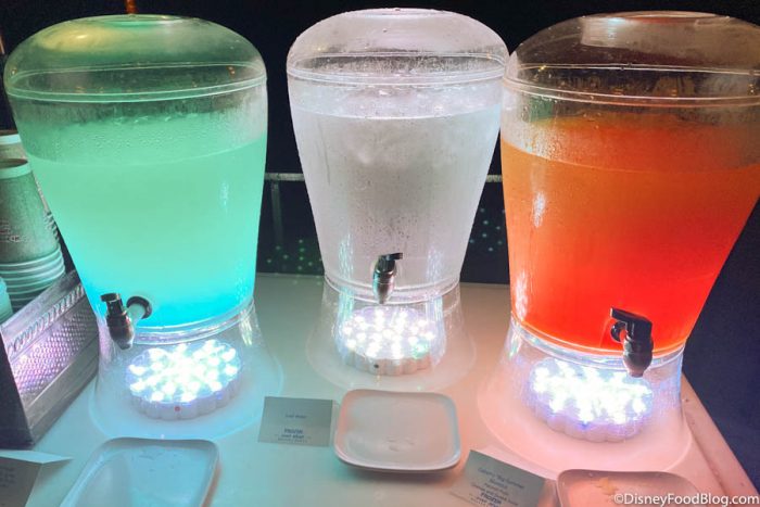 At the self-serve beverage stations, we found even more delicious drinks to choose from! One thing’s for sure — you can certainly walk away from the Frozen Ever After Dessert Party well-hydrated if you play your cards right!
