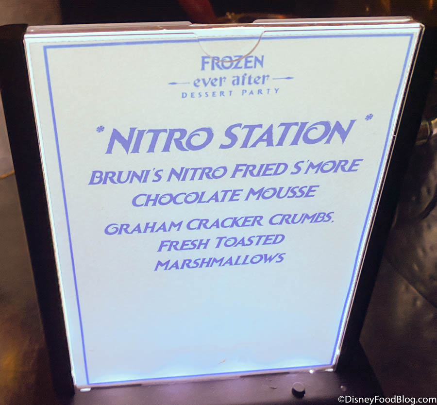 (You can sometimes find a Nitro Station at some of Disney World’s other dessert parties, such as the Star Wars: A Galactic Spectacular Dessert Party at Hollywood Studios! And the Nitro Truffle is a favorite at the Epcot Food and Wine Festival as well! It’s an easy crowd-pleaser.)