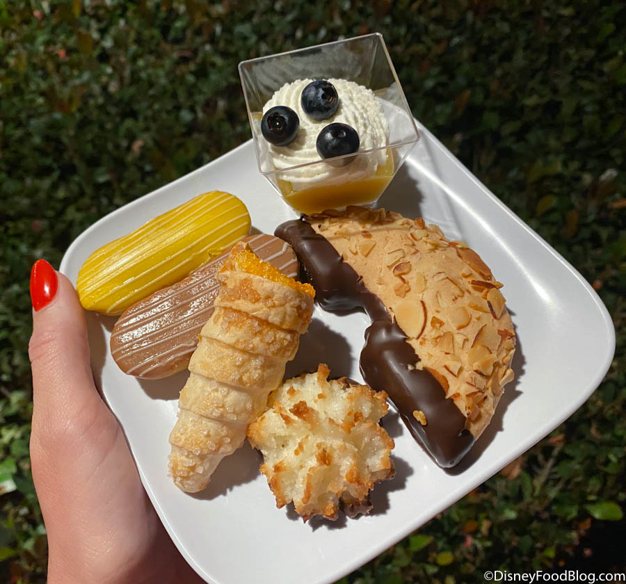 - All you care to eat desserts, including hot desserts and fondue. This is a nice, indulgent experience for sure. But the eats weren’t spectacular, and there are much better snacks to be had around World Showcase for much less cash outlay.