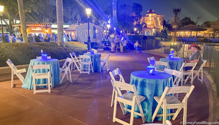 Note that the Frozen Ever After Dessert Party is held in an uncovered, open-air setting. This means you’ll want to dress for the weather, so don’t forget those scarves and gloves if it’s chilly.