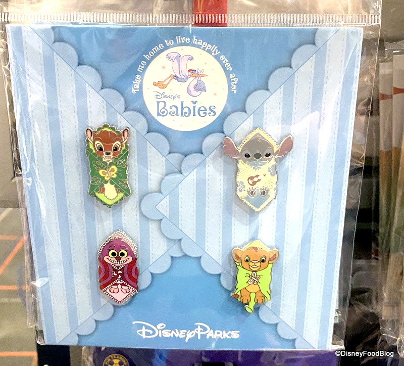 Pin traders, this one’s for you! There’s a pack of four pins of Disney Babies for $27.99. Ah, so that’s what the Cheshire Cat would look like as a baby.