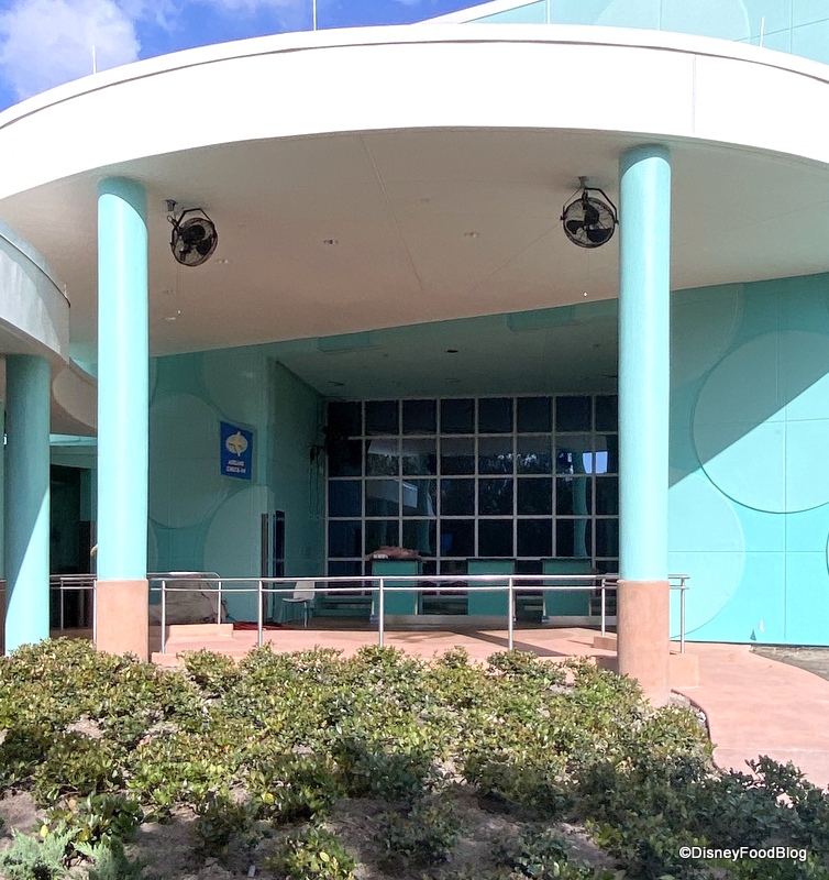 The walls around Pop Century’s airport check-in have come down, but it looks like some minor refurbishment is still happening off to the side. At least you can take a break from the blasting Florida sun under the awning now.