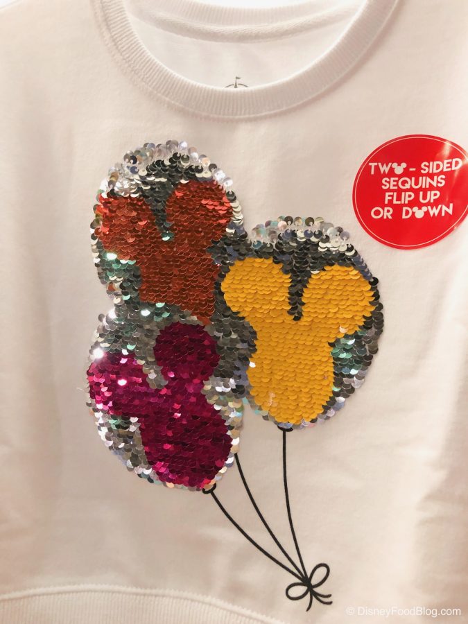 We also spotted three adorable flip sequin tops for girls! The first one features Mickey Balloons.