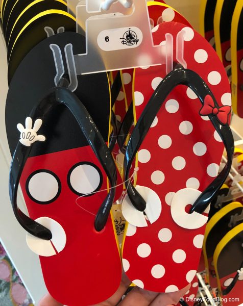 The Mickey and Minnie backpacks are $29.99 each. Finally, to complete this classic Mickey and Minnie look, you can sport these flip flops: