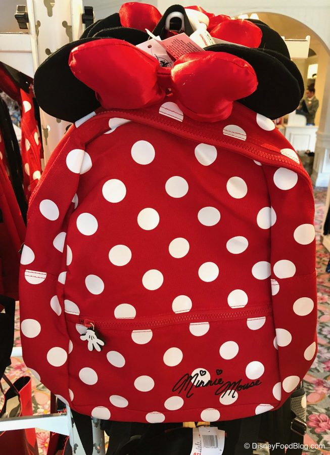 The Minnie backpack is just as cute with her signature polka dot design…