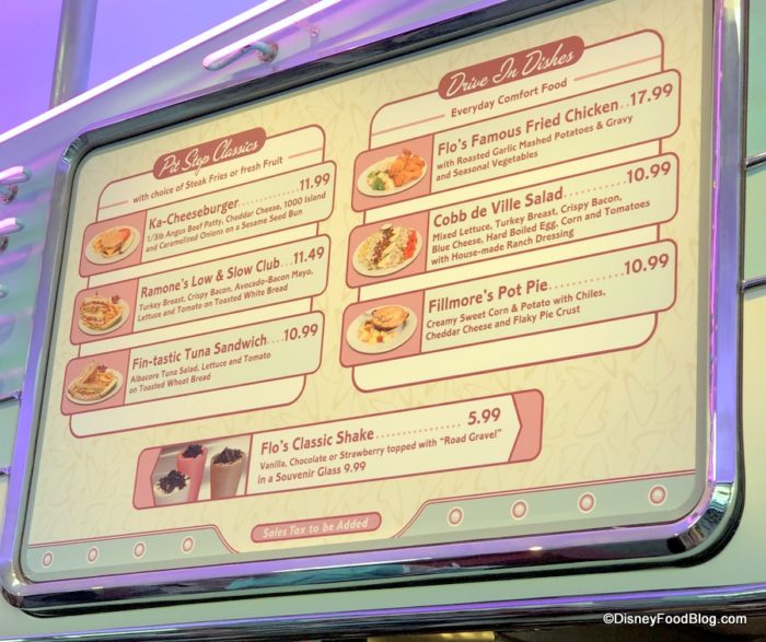 Flo’s V-8 Cafe in Cars Land at Disney California Adventure can help you travel back in time to enjoy the sights and tastes from decades ago. The interior has plenty of vintage car detailing, and the menu is packed with comfort food that puts a twist on some old favorites.