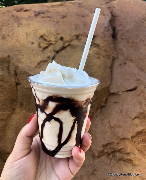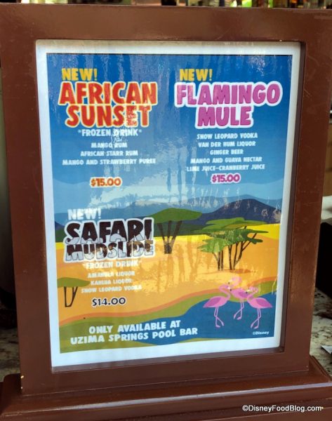 You may recall our recent visit to Uzima Springs when we sipped on the African Sunset. (And you can read the review of that frozen fruity refresher here!) Along with the Flamingo Mule, the Safari Mudslide completes this new trio of beverages.
