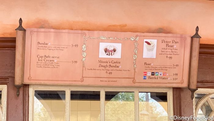 Well sadly, as of today, the Arendelle Aqua Cone is no longer available at Storybook Treats! Don’t worry — the Minnie Cookie Dough Sundae and Peter Pan Float are STILL safe… for now!