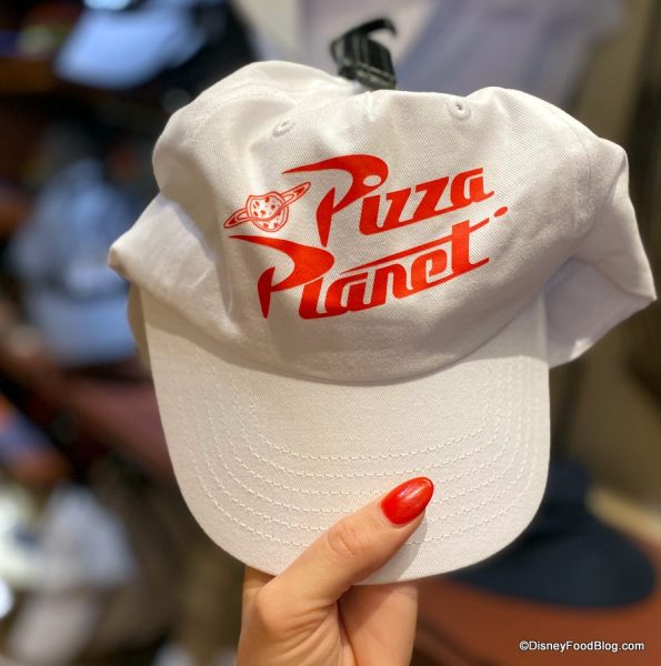We found this hat at the Emporium on Magic Kingdom’s Main Street, U.S.A., even though it’s giving us old school Hollywood Studios vibes, since Toy Story‘s famous Pizza Planet used to have its own counter service nod in the park. (These days, the location is the Muppets-themed PizzeRizzo).