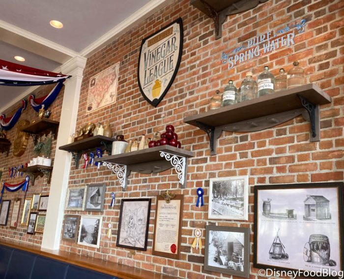Remember how we told you Sam the Eagle would be making an appearance at this new Epcot dining experience when it opened? Well, we encountered our fine feathered friend right when we stepped inside Regal Eagle Smokehouse for the first time and saw his patriotic likeness depicted in this beautiful mural!