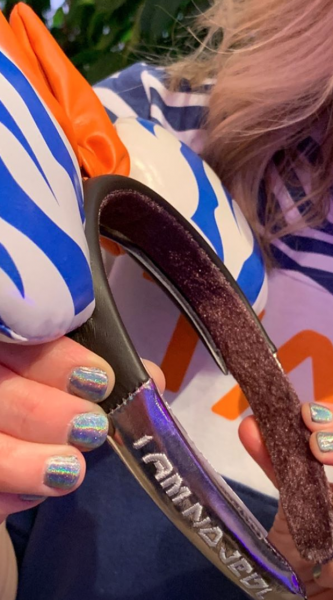 We barely got to see the back of them, but it looks like they say “BEEP BOOP BEEP!” in sparkly letters! That’s droid-speak for “adorable!”