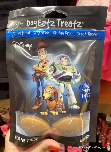We found these at Darkroom and 5&10 in Disney’s Hollywood Studios, and we imagine we’ll start seeing more of them in areas of stores in Disney World where you can find Disney Tails pet accessories. The DogEatz Treatz are $10.99, and the CatEatz Treatz package is $5.99.