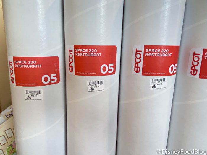 At some of the Festival of the Arts merchandise kiosks, we spotted some new Art Prints featuring artwork for two new coming soon Epcot experiences! There’s this new Space 220 Art Print for $90!