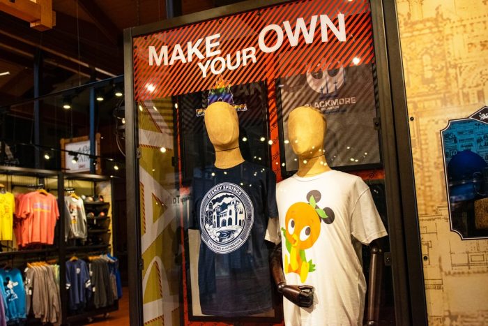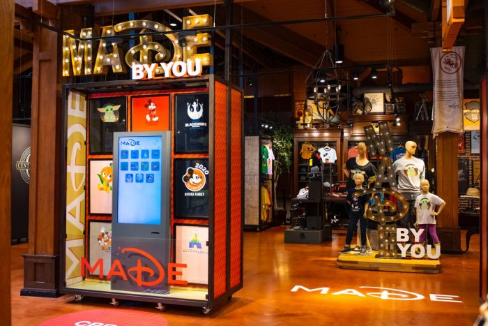 If you want to design clothes that could stand up to Edna Mode’s extreme specifications, you can go to the new “MADE by You” kiosk inside the Marketplace Co-op to craft your own merch, including some custom apparel.