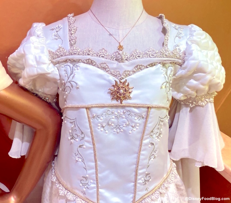 Or, if your princesses are feeling like dancing at the ball, they can spin around in the Rapunzel Wedding Dress (we are swooning over all the pearls and embroidery!!)…