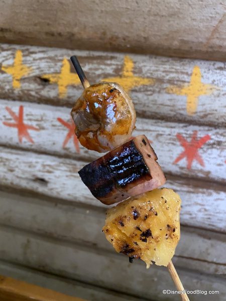 Though the Specialty Skewer ($6.49) is seasonal, the Cast Member we spoke with informed us that it should be around for at least a couple of months. And that’s good news because this is a great addition to an already solid selection. (Because don’t forget, there’s a BACON-WRAPPED Skewer here, too!)