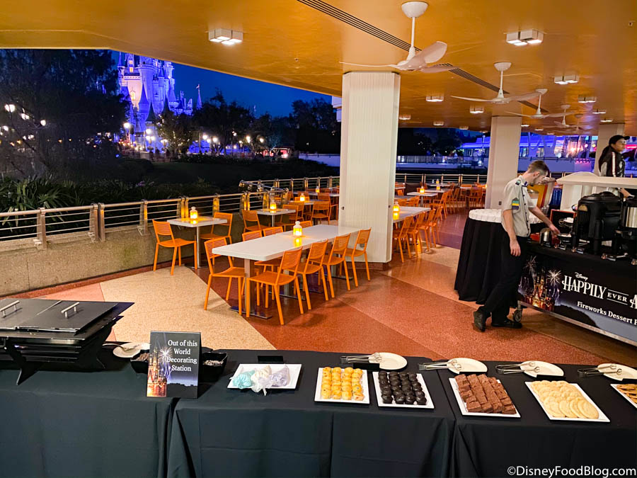 Guests with Garden Plaza Viewing will enjoy the desserts at Tomorrowland Terrace, and will be escorted to separate firework viewing location in the Plaza Garden.