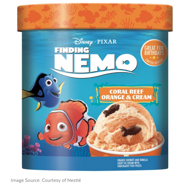 You better believe we’ll be searching high and low for this Finding Nemo Coral Reef Orange and Cream Ice Cream! It’s light vanilla ice cream, with orange sherbet, and fish-shaped chocolate pieces!