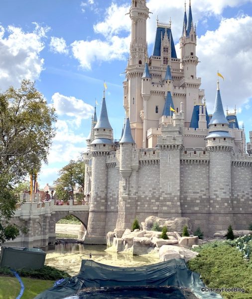 The refurbishment of Cinderella Castle looks like it’s underway. Scaffolding has been erected on one side of the castle moat.