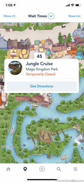 UPDATE: Jungle Cruise has reopened with a 35-minute wait.
