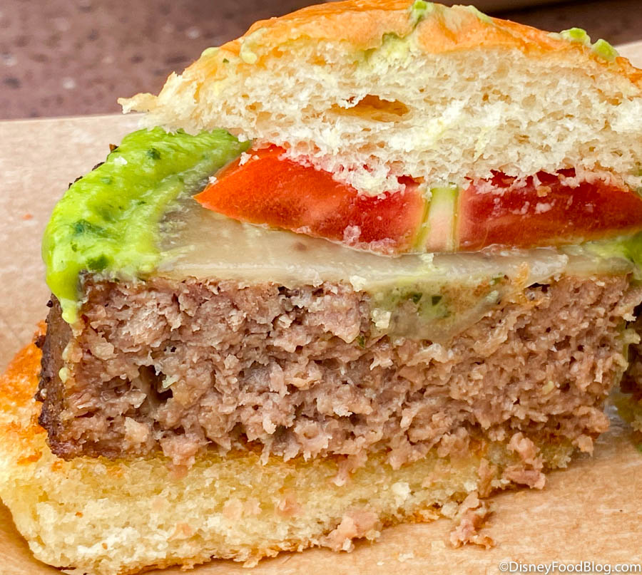 Priced at $8.00, you certainly get your money’s worth in the size of the patty alone. This thing is THICK, almost like a hockey puck level of thickness. It makes it really difficult to bite down into the burger! Once you do get a decent bite in, the flavor was overall just okay! While we’re glad to see they kept the Impossible™ Burger as a vegetarian option for the festival, but we wished there was more flavor!