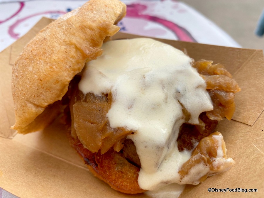The French Onion Slider was a highlight of this booth for us! The meat was cooked medium and came out super tender. It had a great flavor but was not overpowering! Disney should seriously consider adding a full size version of this to one of their restaurants because we would totally order it!