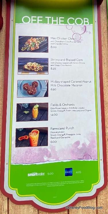 Finally, for those looking for an adult beverage, Off the Cob has the Fields & Orchards with Elderflower and Artichoke Liqueurs for $14. This one was really delicious, too! It kinda tasted like a Fuzzy Navel to us! Really awesome stuff!