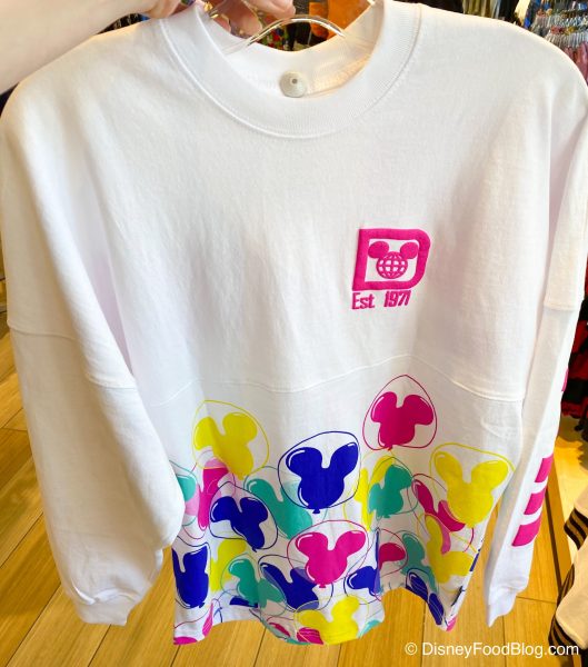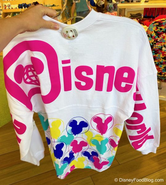 We’ve been obsessed with the latest round of spirit jerseys to hit Disney Parks! Whether it’s a pretty lavender jersey just in time for spring, or a monstrous Monsters University jersey, we can see our collection growing by the day! And after spotting the cute-as-can-be balloon spirit jersey in Disneyland, we kept our eyes peeled for it to appear in Disney World!