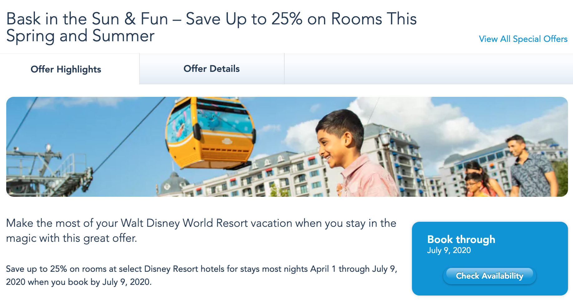 Earlier this year we told you about the Sun & Fun discount! With this deal, all guests can save up to 25% on rooms at select Disney World resorts for most stays. This promo was originally supposed to expire today, however, Disney’s just extended this special offer! You now have until July 9th to lock-in this discounted rate for stays from April 1st, 2020 through July 9th, 2020!