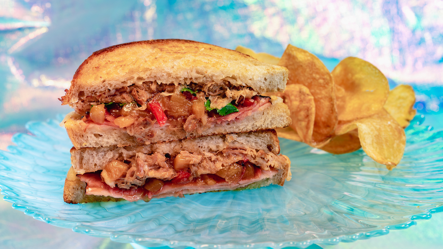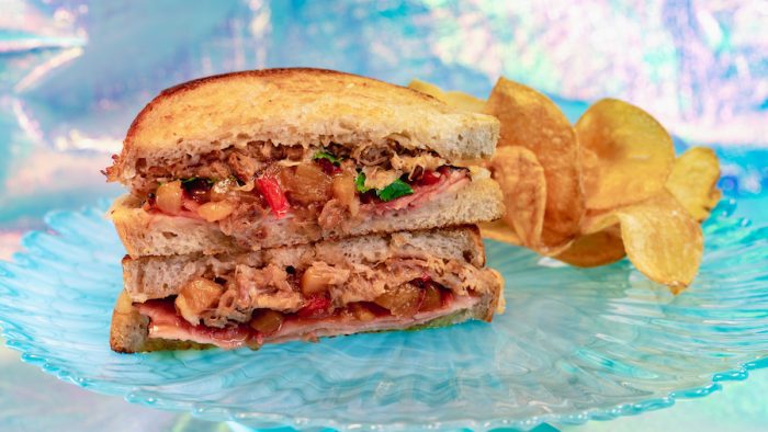 And, just around the corner, you can stop by Jolly Holiday Bakery Café to grab the Island Pork Toasted Sandwich made with kalua smoked pork (!!!), Black Forest Ham, Monterey Jack cheese, pineapple relish, and cilantro. It’s also served with a side of house-made chips.