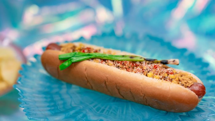 You can nosh on the Esquite Hot Dog at the Refreshment Corner while you pick your spot to watch the parade! The foot-long hot dog is topped with crushed corn chips, corn esquite mix, cojita cheese, and chili-cayenne powder . It’s served with a side of chips or fresh fruit.