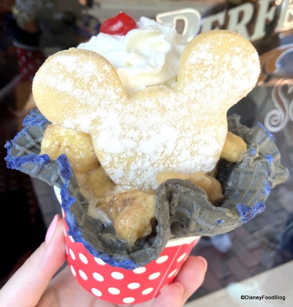We’re ready to give our sweet tooth a work-out on the new Dulche de Leche Sundae at Gibson Girl Ice Cream Parlor. This baby comes with a double scoop of Dulce de Leche ice cream in a waffle cone bowl and is topped with bananas and caramel sauce. Whipped cream and a strawberry add in that classic sundae flair, but we’re still freaking out about the whole Mickey sugar cookie that comes in the sundae!