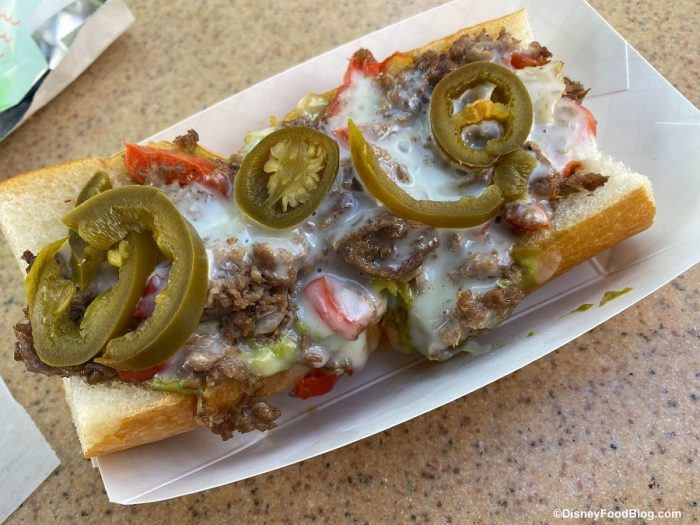 But, we still have room to try the brand new California Cheesesteak! Priced at $11.50, this sandwich is made with Thinly Sliced Beef is topped with Grilled Onions, Bell Peppers, Jalapeños, Avocado Spread and Melted Oaxaca Cheese.