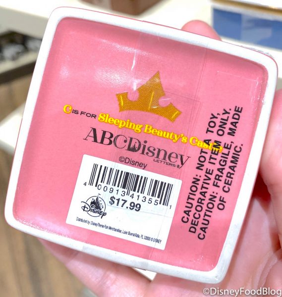 Just like the C Mug and the M Mug, Disneyland’s version of both Trinket Boxes are also different from Disney World’s! The Sleeping Beauty Castle Trinket Box is $17.99 and features the same design from the mug…