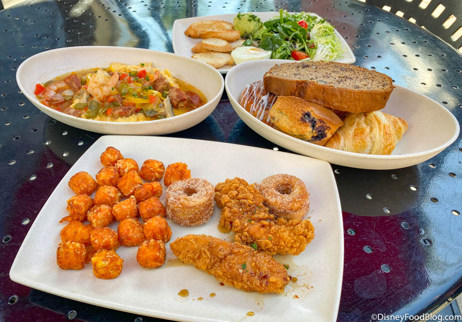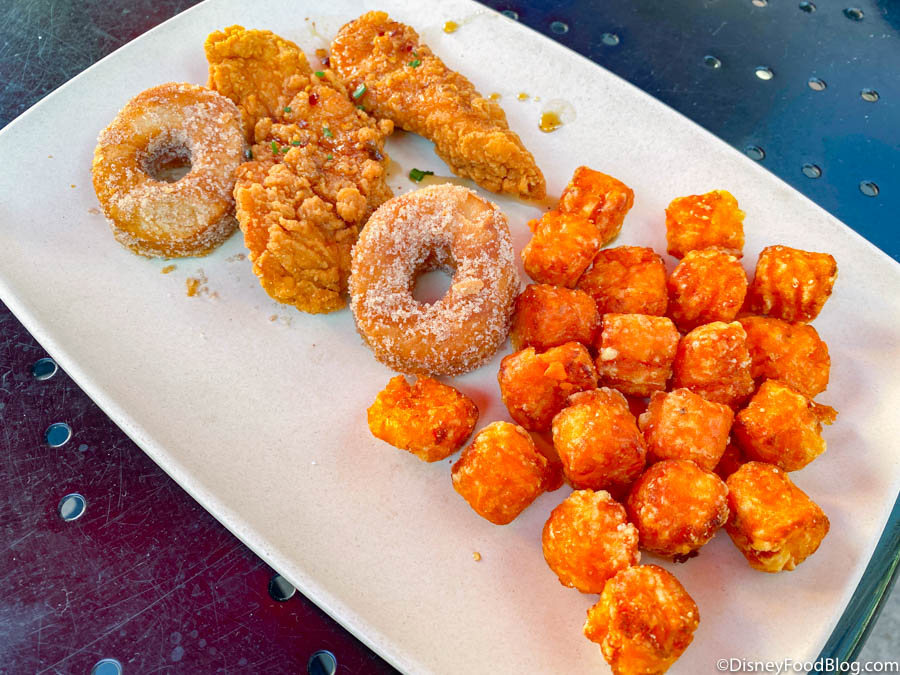 If you need a quick bite to fuel your morning, ABC Commissary’s breakfast options can be some great picks for the price! We especially enjoyed the Shrimp and Grits and we would gladly eat Sweet Potato Bites with any meal. The portions are big enough to share (or to keep all for yourself) before you explore everything else Hollywood Studios has to offer! Chicken and donuts then Mickey and Minnie’s Runaway Railway, anyone??