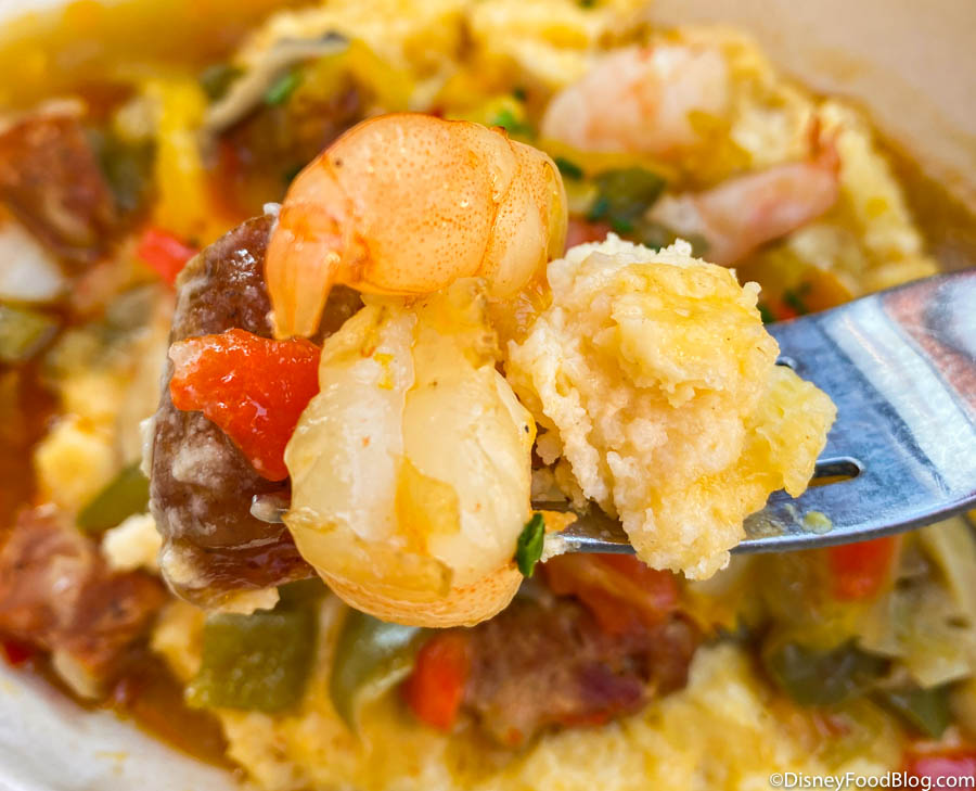 Out of all the ABC Commissary breakfast options, this was definitely our favorite! The grits were SUPER cheesy (the best part, duh), and went wonderfully with the shrimp. The sausage was tender and flavorful with the spicy kick from the peppers and onions!