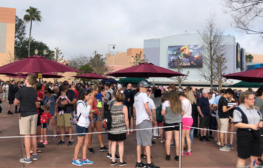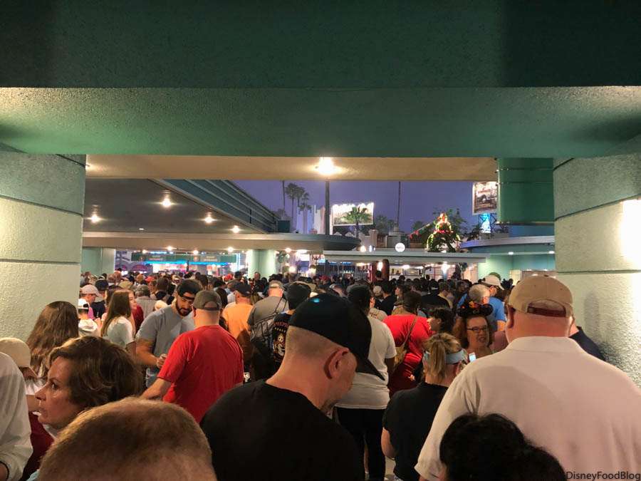 Here’s a look behind us! While this hasn’t been totally unusual since the grand opening of Rise of the Resistance, it was still a larger group of people waiting to enter the park!