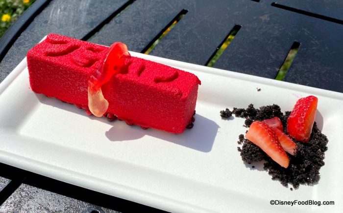 But, you can’t have a meal without dessert, and the Strawberry Mousse with Chocolate Crisp Pearls is a really bright and fun option!