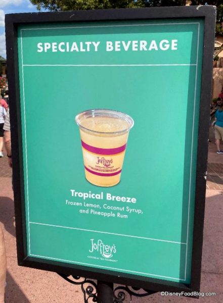 And the FINAL stop was the The American Adventure Joffrey’s, where they’re serving up the Tropical Breeze. This one has some serious piña colada vibes, made with a mix of frozen lemon, coconut syrup, and pineapple rum.