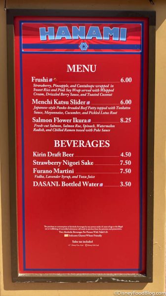 Hanami’s drinks include imported Kirin Draft Beer for $4.50 which was also available last year (or year-round in the Japan Pavilion!). There’s also a new Strawberry Nigori Sake for $7.50!