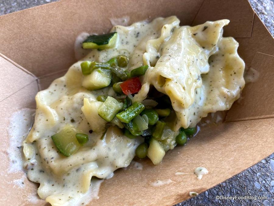 And did you really think we’d go to Italy without trying some pasta? The next dish is the Grilled Chicken Ravioli with spring vegetables and creamy pesto sauce for $9.00. A REALLY good use of a Dining Plan Snack Credit if you have one and are looking to get some bang for your buck.