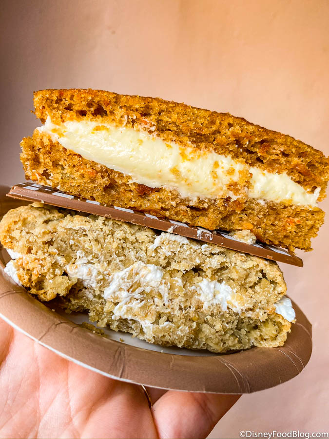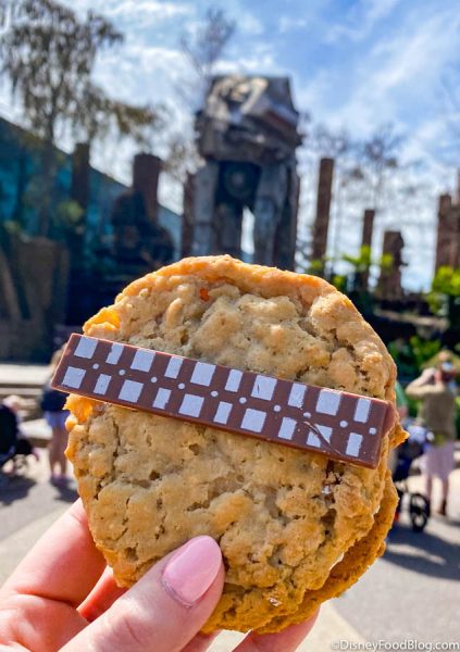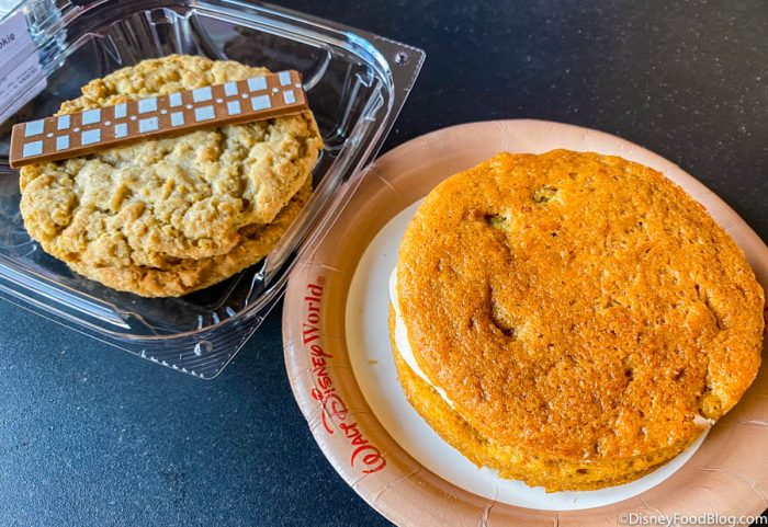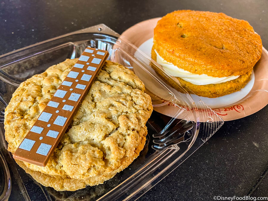 Head to Backlot Express in Hollywood Studios to pick up the Wookiee Oatmeal Cookie Sandwich for $5.99 or Trolley Car Cafe to get the Carrot Cake Cookie for $3.99!