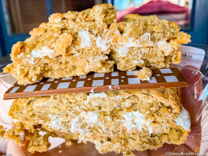 But as of December 2019, a new challenger has entered the ring! Introducing the Wookiee Oatmeal Cookie Sandwich! This one features two oatmeal cookies, sandwiched together with a fluffy whoopie-pie cream filling, topped off with a chocolate bar designed to look like Chewbacca’s bandolier!