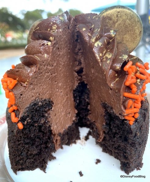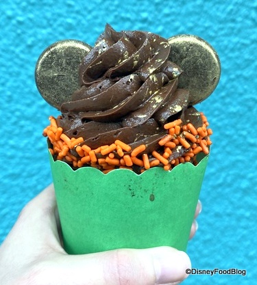 Clearly, that’s not enough chocolate, so they’ve added two chocolate coins on top for Mickey’s ears and a ring of orange sprinkles around the side. 😉 And all the green and gold is totally giving us St. Patrick’s Day vibes.