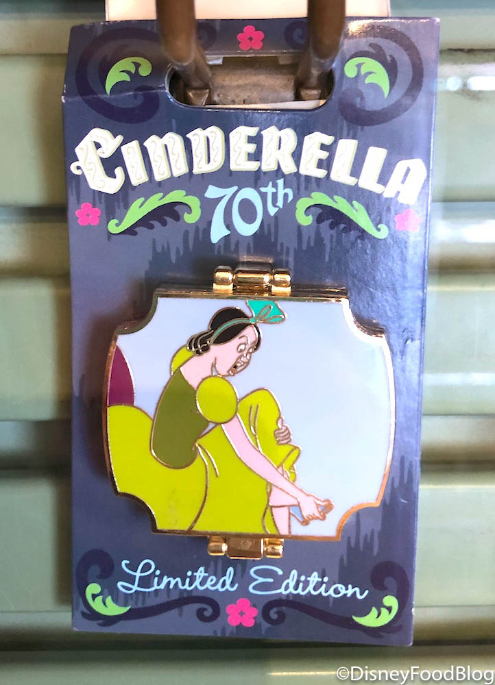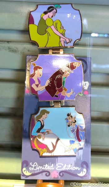 …showing how Drizella and Anastasia didn’t fit in the glass slipper as well as the moment Cinderella’s life changed forever! The Cinderella Glass Slipper Pin and the rest of the anniversary pins cost $17.99 each.