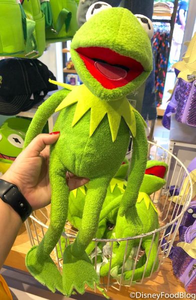 Kermit the Frog here… Our lil green friend has been chilling on the shelves of Hollywood Studios for a LONG time. But, the Kermit Plush ready to play the music and light the lights over at DisneyStyle for $26.99.