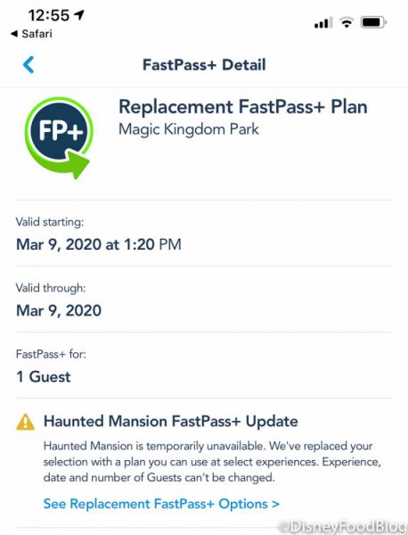 It seems Haunted Mansion is continuing to experience some operational delays today. We had scheduled a FastPass this afternoon to drop in on our ghoulie friends to make sure everything was still groovy by them, but we received a push notification stating Haunted Mansion was now temporarily unavailable.