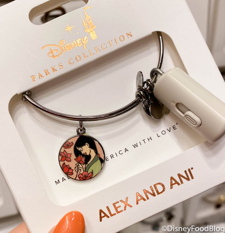 Between this new Mulan Alex and Ani Bracelet and the new Max Alex and Ani Bracelet we also discovered today, we’re facing some tough decisions! The new Mulan Alex and Ani Bracelet is $49.99 at Magic Kingdom’s Emporium — where we spotted it today!